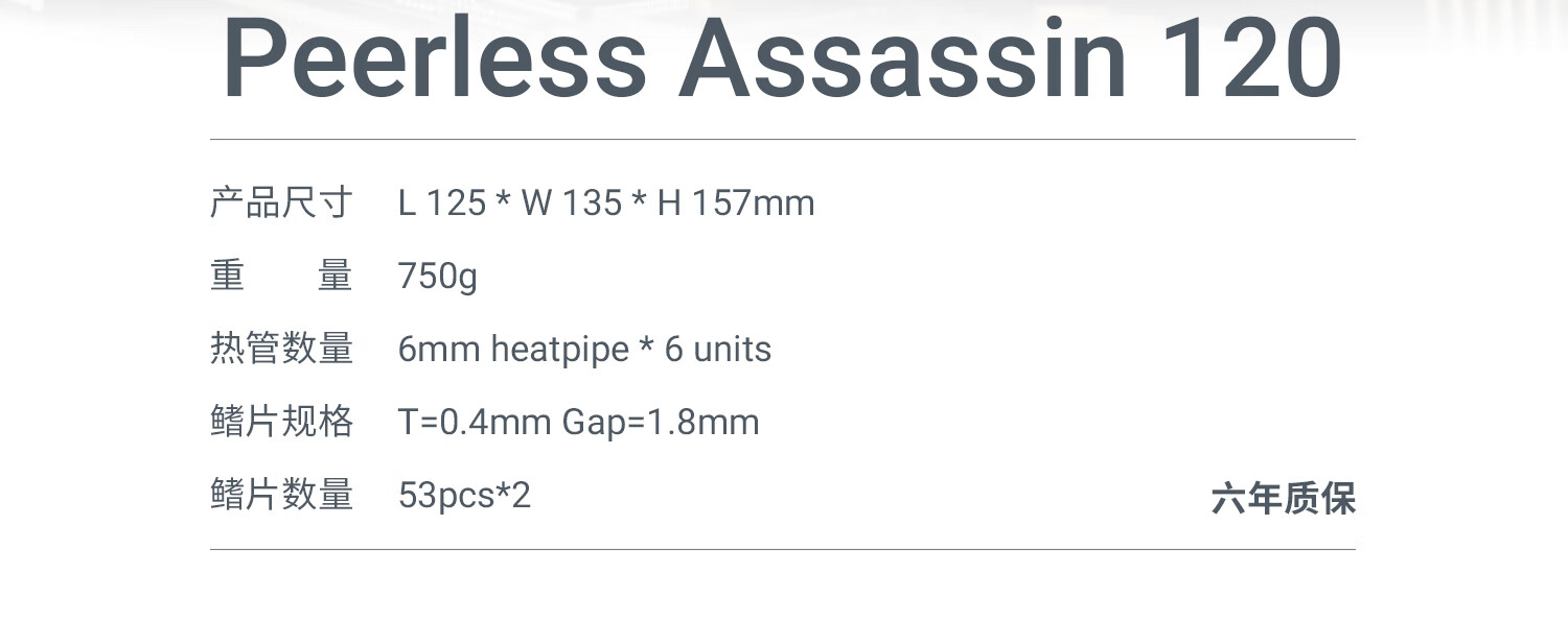利民(Thermalright)PA120 绝双刺客 AGHP 3.0 热管散热器 6热管双塔 双平台全金属扣具带顶盖双C12风扇