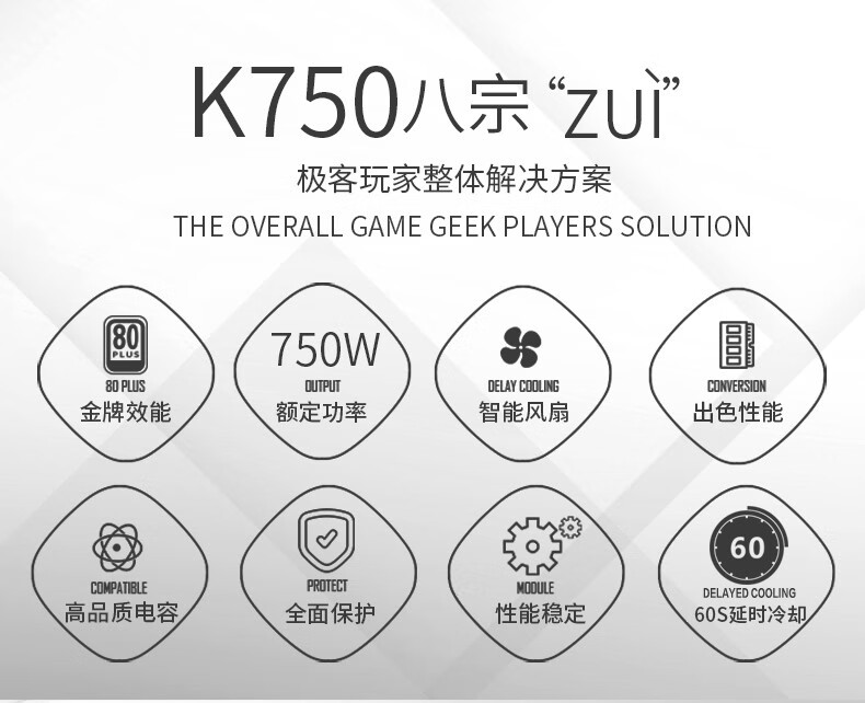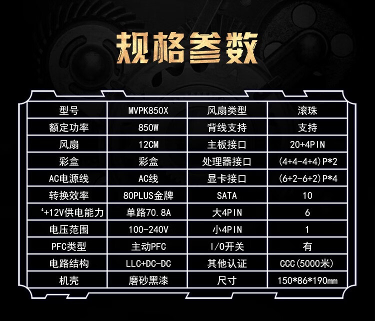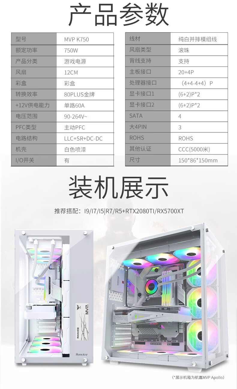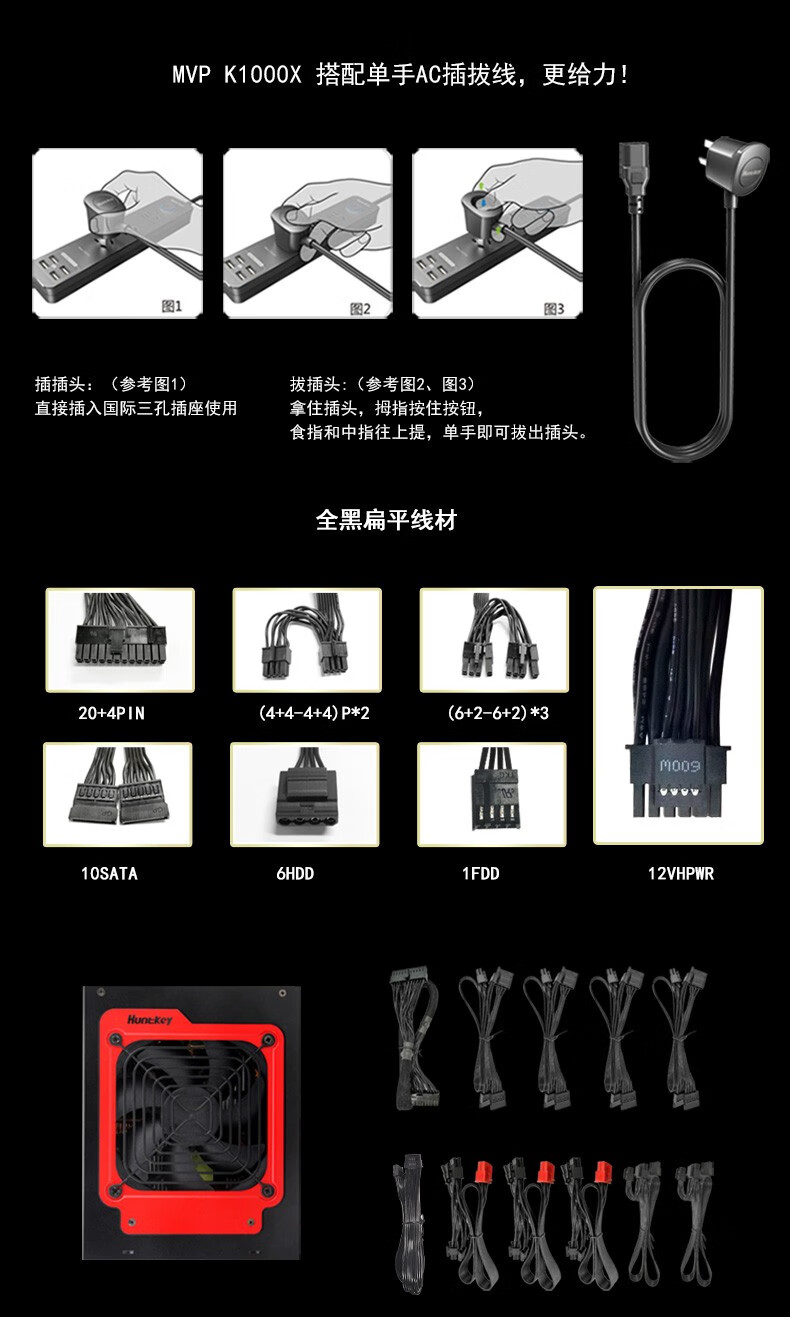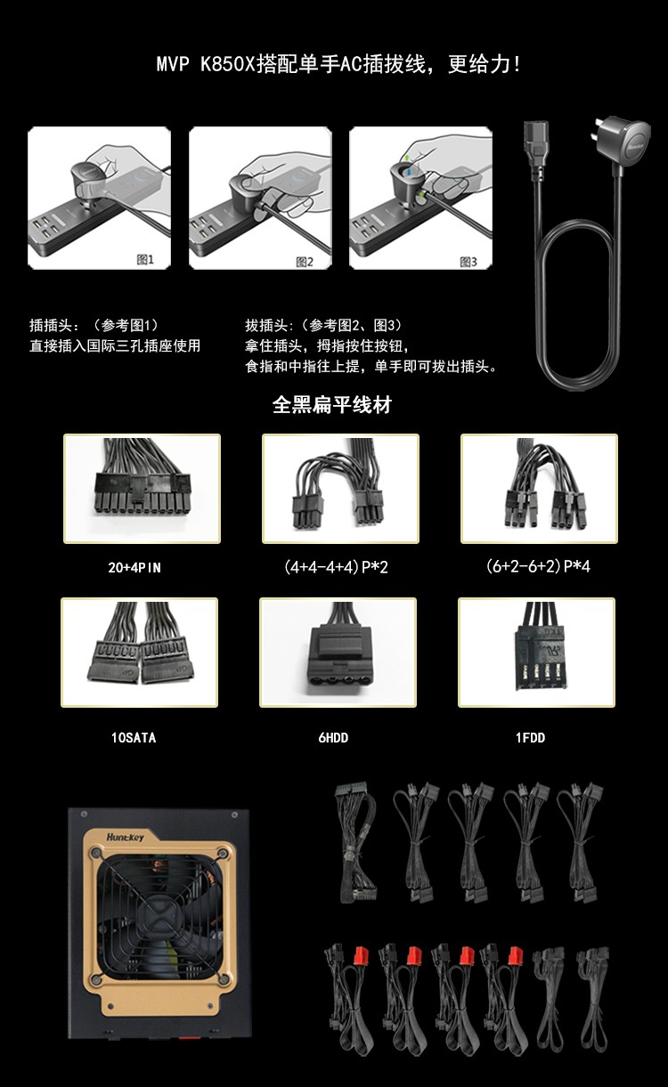 航嘉(Huntkey)MVP K850 80+金牌全模组电源 850w ATX3.0 原生pcie5.0